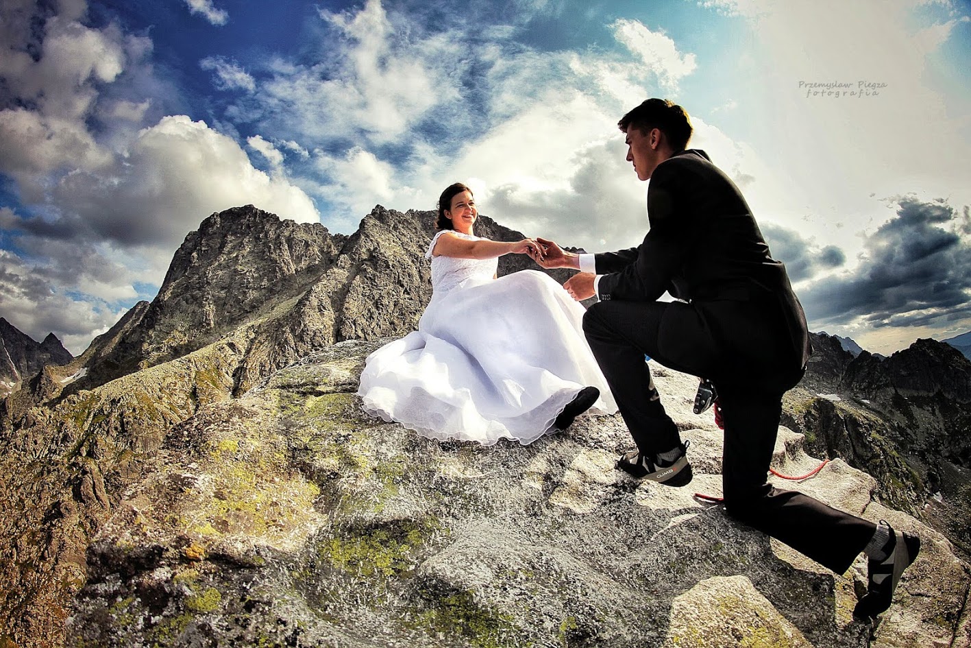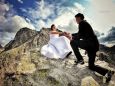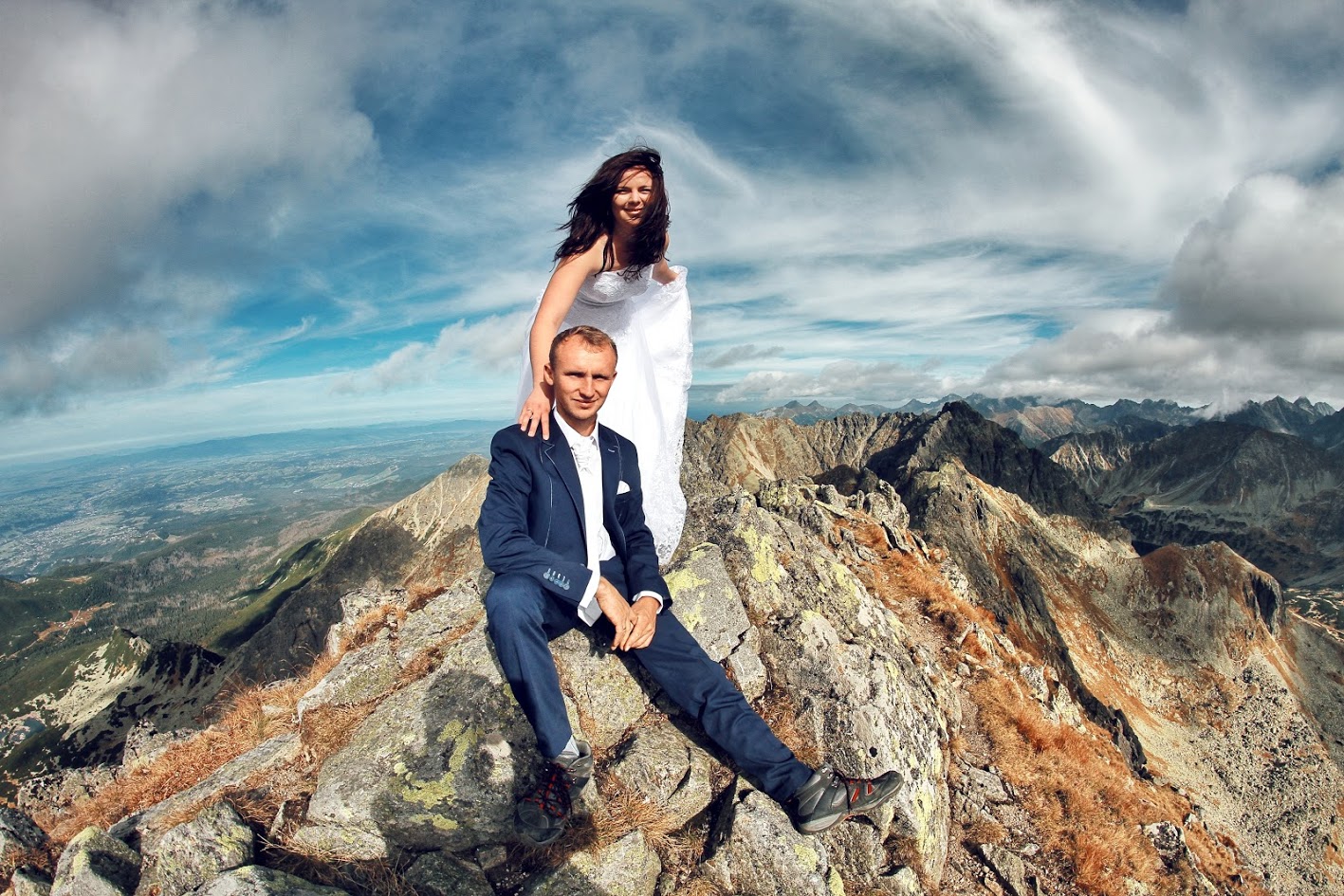 Na efektowne, czasem wyglądające na szalone, plenerowe zdjęcia ślubne, wykonuje się od jakiegoś czasu w wielu różnych miejscach - starych fabrykach, w ruinach czy halach magazynowych. Ślubne fotki robione są też na górskich halach i szczytach, najczęściej w Tatrach, choć ta moda jest obecna i w Beskidach.
