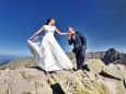 - Ja wspinam się od 25 lat, to mi ułatwia taką pracę. Fotografuję pary, które są w pozowaniu sfokusowane na góry i tego typu sesję, przy czym swoje sesje wykonuję tylko w Tatrach. .Z reguły to albo fani Tatr, albo osoby, które tam się poznały lub też weszły na wyższy poziom związku. Jeżeli nowożeńcy mają też robione zdjęcia tradycyjne, wtedy z kimś innym. Co ciekawe – rzadko są to osoby z Zakopanego i okolic, a nawet np. Krakowa. Pod latarnią najciemniej. To ludzie z Warszawy, z drugiego końca Polski i z innych krajów: Niemcy, Anglia. Jedno z nich jest wtedy Polakiem. Długość takiej sesji jest różna. W okolicach Kasprowego trwa to około 4 godzin. Ale w takich miejscach jak Świnica, czy Zawrat nawet kilkanaście. Ciekawie było na Mnichu. Akurat tam para była pierwszy raz w górach i ledwo się mieściła. Młodzi ze strojem dają sobie radę, najważniejsze żeby buty mieli dobre, a te można przebrać na szczycie. Fotografuję nowożeńców między czerwcem a październikiem. Wiele zależy od pogody. Przede wszystkim od tego do kiedy i od kiedy leży śnieg w Tatrach. Po prostu biel sukienki źle wychodzi na tle białego śniegu. Wykonuję około 30 sesji rocznie - relacjonuje fotograf.