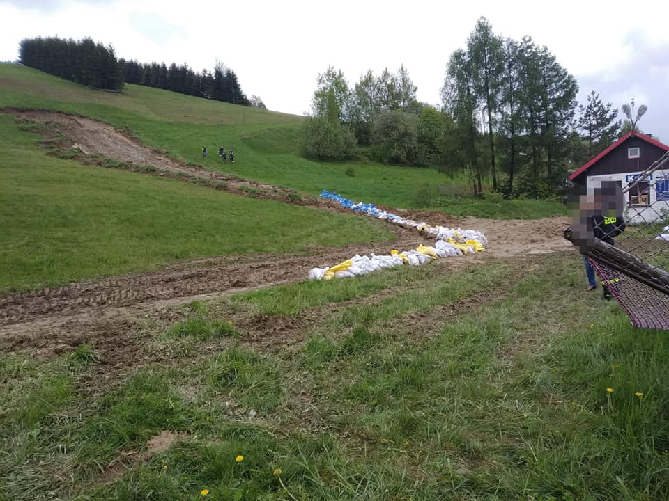 "Działania w pierwszej kolejności polegały na zabezpieczeniu miejsca zdarzenia oraz odblokowaniu drogi. Następnie na miejsce zdarzenia dotarli przedstawiciele z gminy na czele z Panią Wójt, ustalono iż trzeba ułożyć wał z worków z piaskiem aby zmniejszyć skutki ewentualnego następnego zejścia. Ułożono około 220 worków 8 ton piasku. W działaniach brały udział również zastęp z JRG Ustroń oraz OSP Koniaków Kosarzyska dodatkowo koparka oraz ładowarka. Działania zakończono o o godzinie 15:01." - informują druhowie z OSP Koniaków Centrum.
