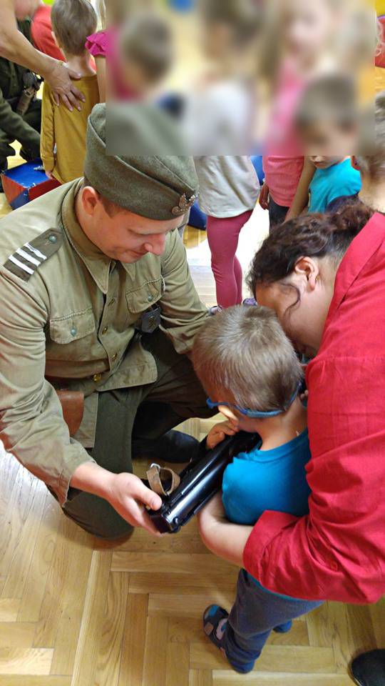 Załączono również liczne fotografie, na których przedszkolakom demonstrowana jest broń z tamtej epoki.