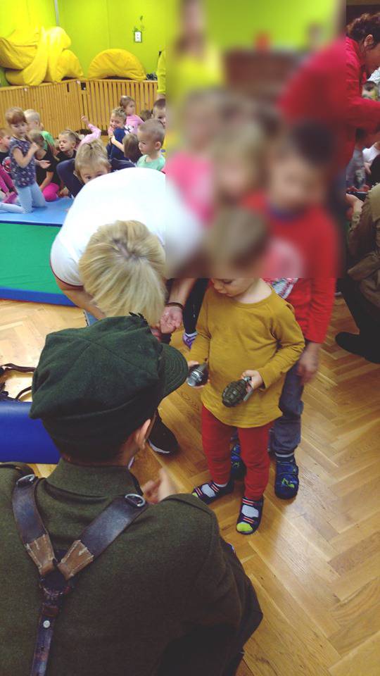"Rodzice, zabierzcie dzieci z tego przedszkola! Co za skrajny przypadek podlizywania się władzy kosztem wychowania malutkich dzieci?! Relacja Grupy Rekonstrukcji Historycznej Beskidy nie dotyczy ludzi dorosłych, nie dotyczy też miłośników historii w szkole średniej i tej która myśli o swojej przyszłości w wojskowym mundurze .To pokaz narzędzi śmierci dla 4/5-letnich dzieci!