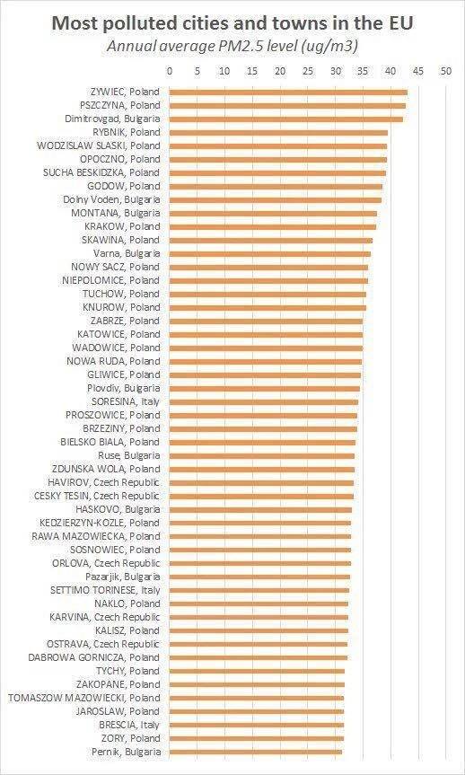 Ukazał się nowy raport Światowej Organizacji Zdrowia (WHO) na temat najbardziej zanieczyszczonych miast w Europie.